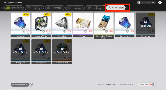 | ▼Check Credit Store | Resets at 4:00 AM (server time) Can earn 300pts daily and exchange for items |