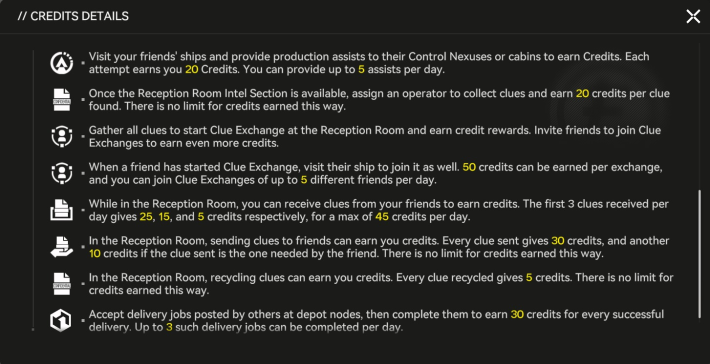 There are several ways to earn F-Credits. Notably, visiting others and handling intel sessions in the Reception Room become more lucrative as your friend list grows. To maximize your earnings, be proactive about sending out friend requests.