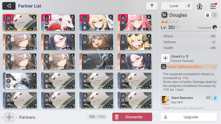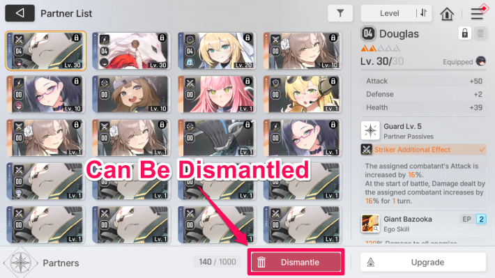 Partners can be dismantled into Support Data, which is used to level them up. Prioritize dismantling your extra 3-star Partners for this purpose.