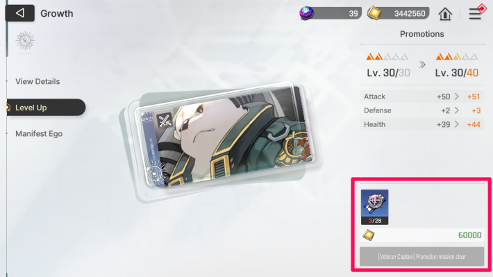 Partners have a level cap that can be raised through Promotion. This process also provides a permanent stat increase.