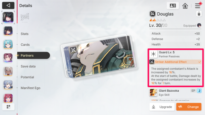 Tips! | Assigning a Partner of the same Class as the Combatant will activate the Partner's passive ability. |