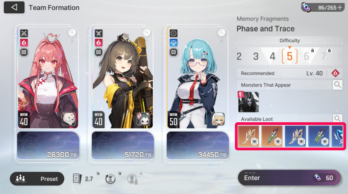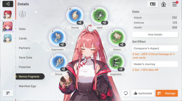 If you don't know which Memory Fragments are suitable for the character, use the recommended feature.