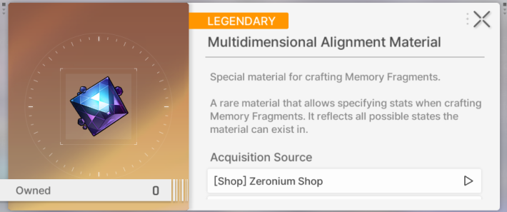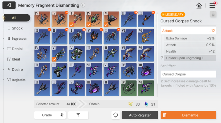 | Tips! | When you dismantle Legendary Grade Memory Fragments, you will receive the Memory Fragment crafting material, Particles of Memory. |