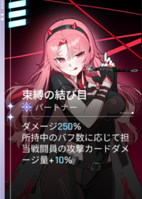 ![]() | 【EP】 3 250% Damage +10% assigned combatant's attack card damage per buff owned (0) |