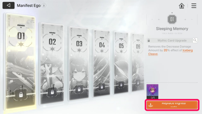 After navigating to the Manifest Ego screen, you can use the Omega Code by selecting Replace Ingredients in the bottom right.
