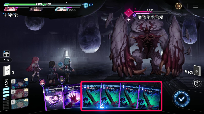 When you can't take any more damage, prepare as much as possible while watching the enemy's Action Count. At this stage, you can go ahead and use Creation.