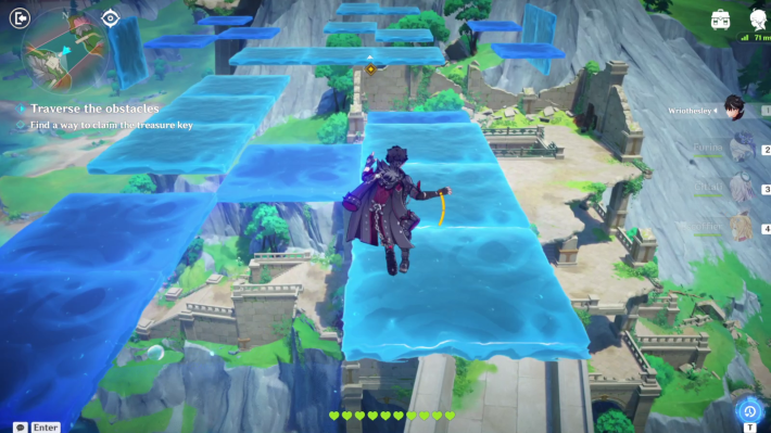 Travelers are to collect the coins found within the stages of the event. Stages are a mix between the Fontaine underwater exploration mechanic and gliding mechanics.