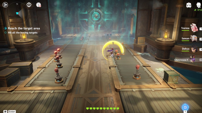 You can use a character with long or wide-reaching normal attacks such as Nahida to hit more gloves than usual.