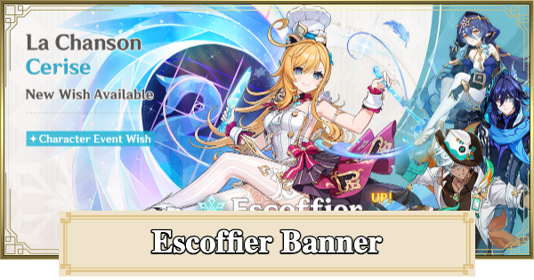 Gacha Banner for Escoffier (La Chanson Cerise) guide for Genshin Impact. Guide contains release date, 4 star characters, gacha rates, banner history, and should you pull.