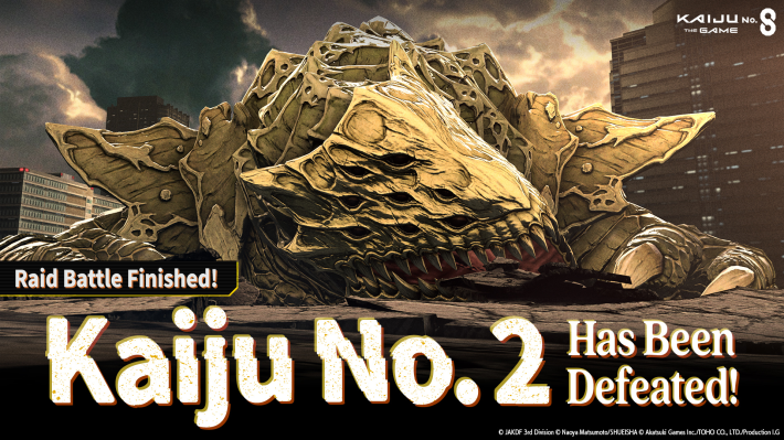 Kaiju No. 2 was defeated on October 3 (PST), so the Raid Battle has ended.The deadline to claim Raid Battle rewards is until noon on October 6 (PST), so be sure to claim your rewards before the deadline.