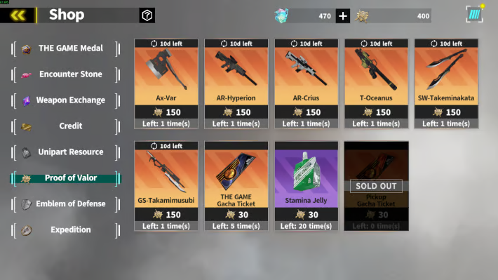 Once you obtain AR-Hyperion with Proof of Valor, it is recommended to get Pickup Gacha Tickets and THE GAME Gacha Tickets. If you have extra Proof of Valor, you can also get Stamina Jelly or a 5-Star weapon other than AR-Hyperion.