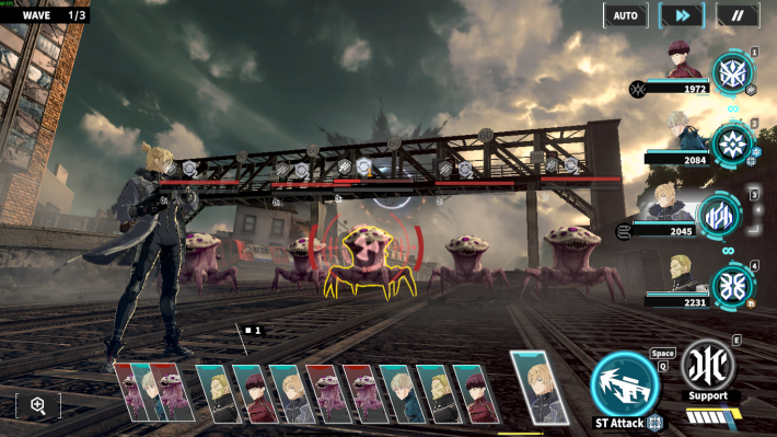 Kaiju A uses attacks that deal AoE or adjacent damage. Since Sagan cannot grant Shields to all allies, it’s difficult to earn a high score from the “damage taken reduction” bonus when using her.