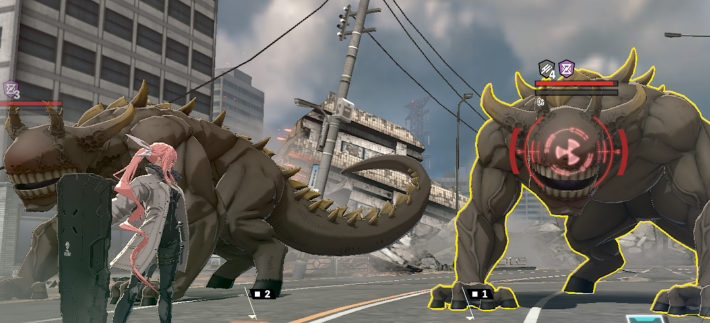 In the second half, two midsized enemies appear, and both have many Plates: Slash x5 and Elemental x3. Use a setup that can efficiently reduce Plates, such as one featuring Gen Narumi (Future Sight), who excels at breaking Plates, to trigger Core Exposed and gain the upper hand.
