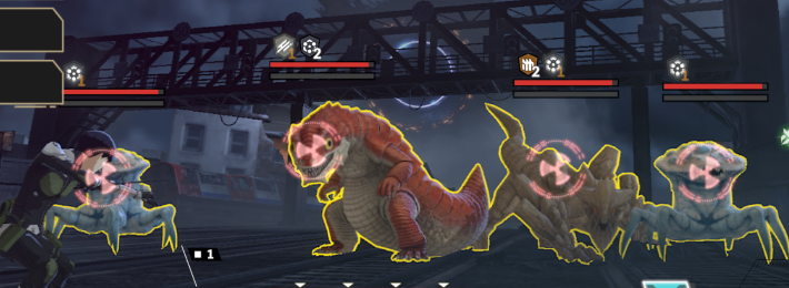 Wave 2 presents one miniature and one midsized enemy. The left-side midsized enemy has more HP, so focus high damage skills like single-target Ultimates on this enemy.