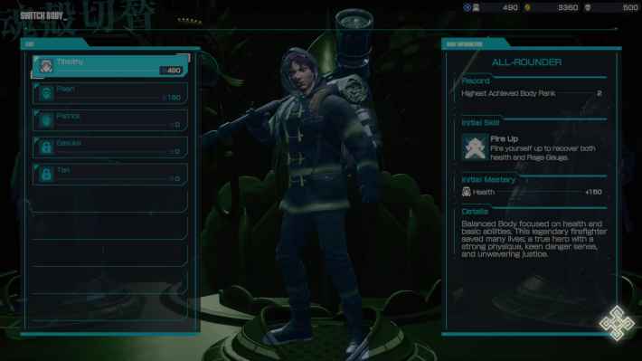 When you survive, your Body Rank increases by 1 (up to a maximum of 6), and you can equip one Core. You will be presented with a random selection of three Cores with different abilities, and you choose one. Once a Core is equipped, it cannot be removed or changed.
