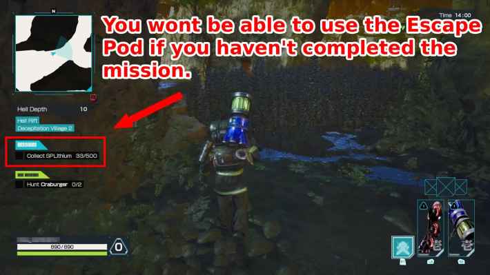 Once you've completed the Mission, find the Escape Pod and escape. The Escape Pod mostly appears somewhere in the square Areas on the Map. You'll basically be raising your Body Rank by repeating this cycle of completing a Mission and then escaping.