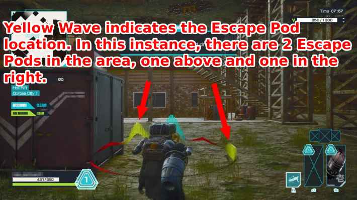 Once you reach a square Area on the Map, use Crouch SP Radar to find the Escape Pod's location. The Escape Pod is in the direction indicated in yellow on the radar.