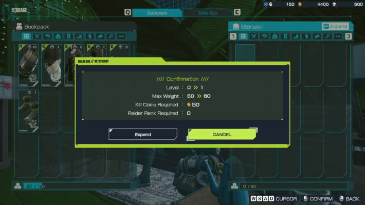 You should use Kill Coins to expand your Storage. While you can also use them to purchase equipment at the Pro Shop Kazoku or the Ant Bazaar, this is a lower priority. The basic strategy is to find Weapons during Exploration, and only consider buying from the shop if you have spare Kill Coins when you restart after dying.