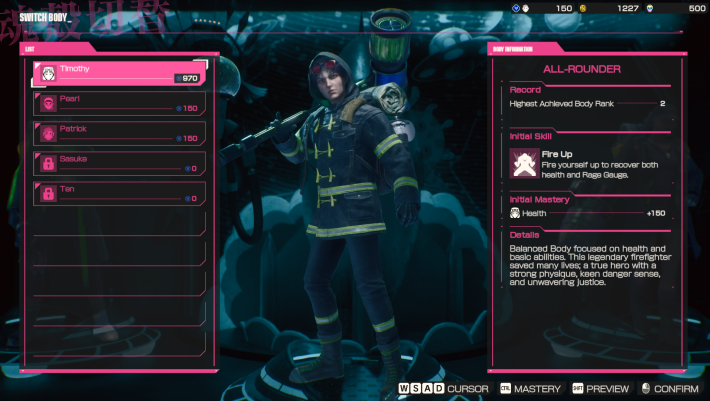 There are two ways to strengthen your Body: raise its Body Rank to equip Cores, and spend Mastery Points to unlock Masteries.