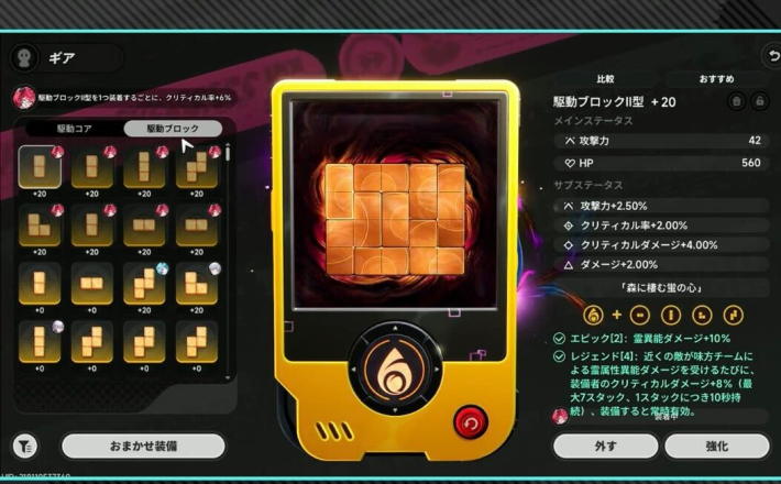 You can increase a character’s stats by equipping and enhancing blocks in the Console slots assigned to each character.