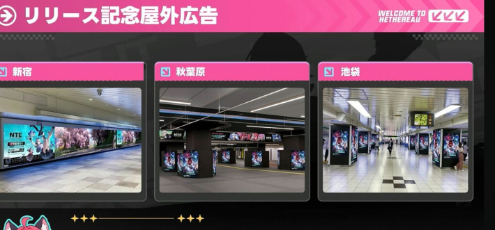 Large-scale outdoor advertisements are planned for Shinjuku, Shibuya, Ikebukuro, Akihabara, and Dotonbori.