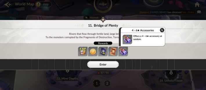 As shown in the table below, the maximum number of stars on accessories dropped by enemies increases as you progress to higher Nightmare stages. Therefore, it is recommended to clear stages up to Nightmare 11 and beyond as early as possible to aim for accessories with a higher number of stars by running Ruby Farming.