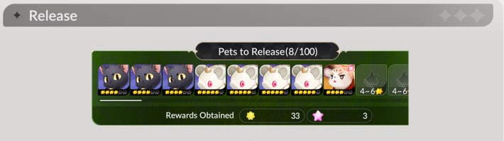 Release unnecessary 4-star or higher pets that you don't plan to train to get Star Fragments and Star Crystals. When you Release a Rare pet, you get Star Fragments, and when you Release a Legendary pet, you get Star Crystals.
