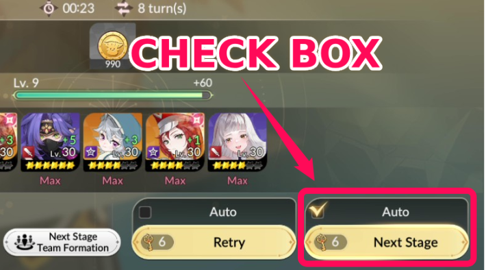 To begin using Auto Play, you first need to unlock it by completing Stage 1-4 in Adventure. In the early game, Auto Play helps streamline progression through normal stages, allowing you to focus more on team building and strategy outside of battle.