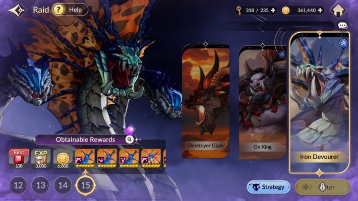 Iron Devourer inflicts Poison and Paralysis. To counter this, bring Heroes that can grant immunity to both. Note that Iron Devourer has three heads, but only the center head can receive damage.