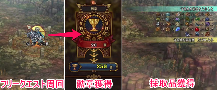 If you want to earn a large amount of Honors, farming Free Quests (Ancient Magic Circle) is recommended. In addition to stage clear rewards, you can also collect items needed for deliveries, allowing you to gain Honors through deliveries as well.